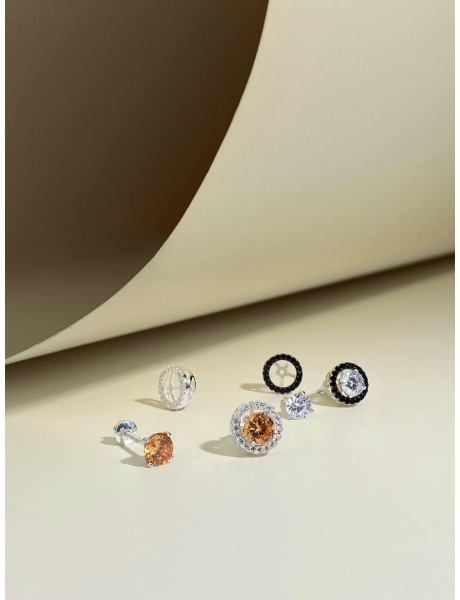 ☑ Набор изготовлен из серебра 925 пробы☑ Вес набора 7.5 - 8 грамм☑ Инкрустирован камнями фианитами..