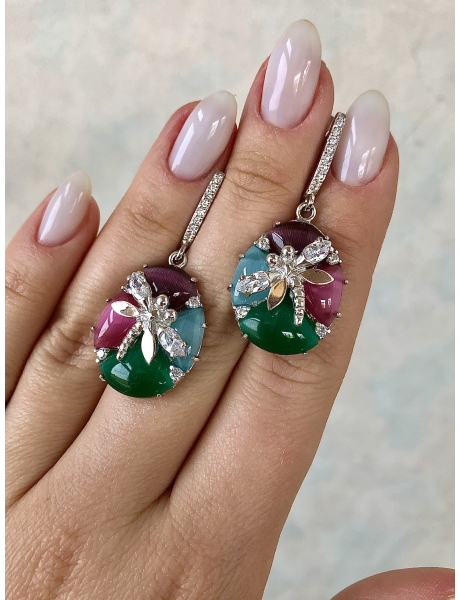 ☑ Набор изготовлен из серебра 925 пробы☑ Вес набора 7.5 - 8 грамм☑ Инкрустирован камнями фианитами..